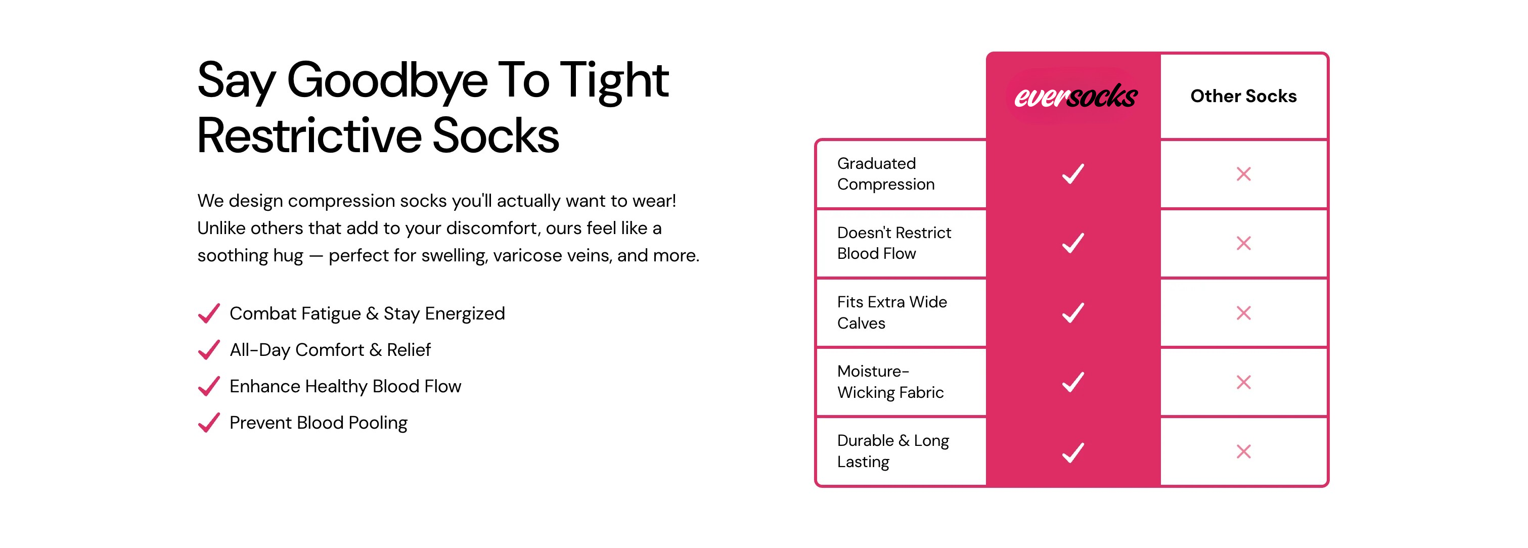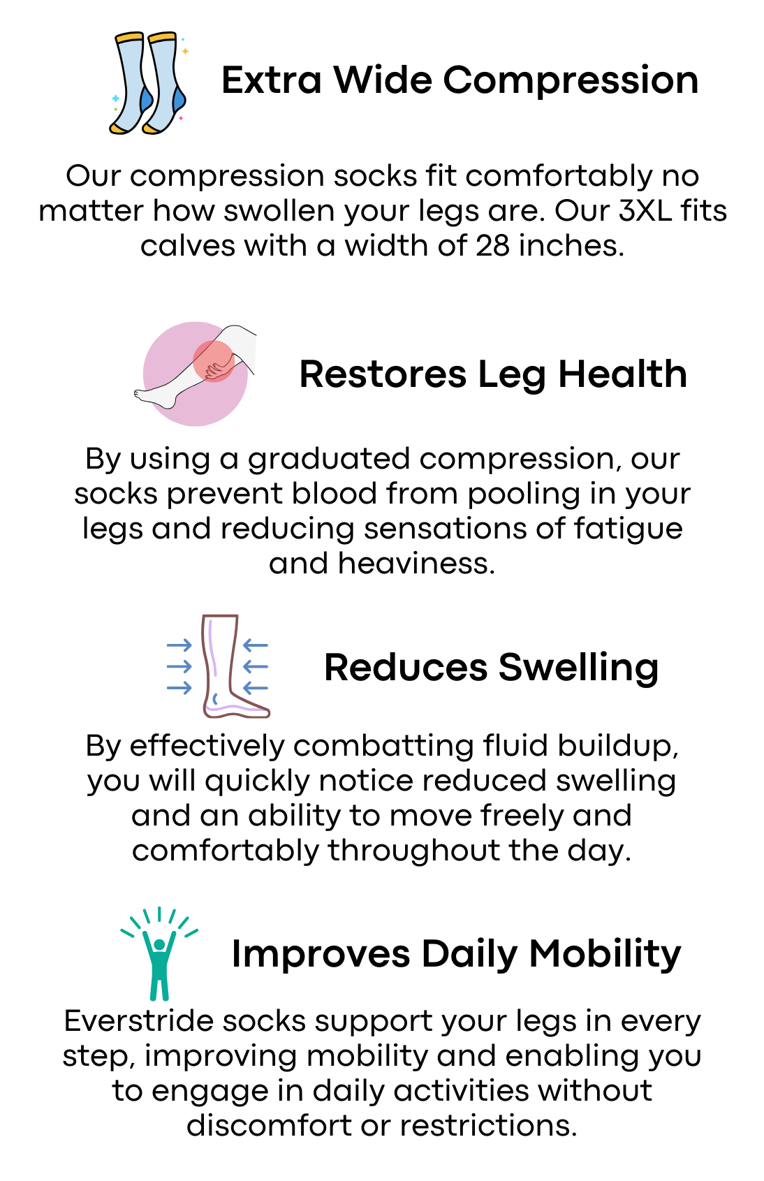 Eversocks compression socks deliver 15–20mmHg of graduated compression to effectively reduce swelling.