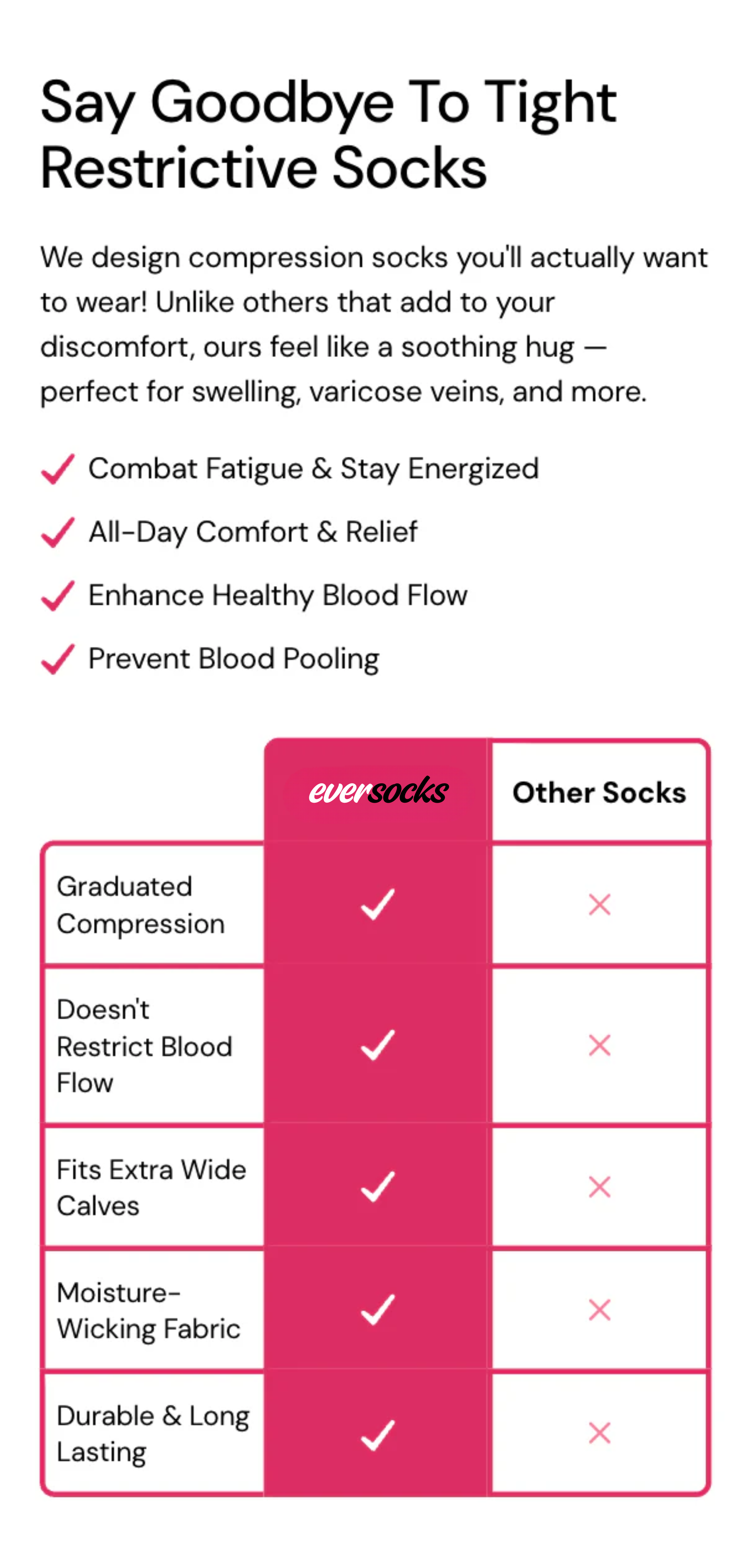 Unlike many compression socks that squeeze too hard and create discomfort, Eversocks takes a different approach.